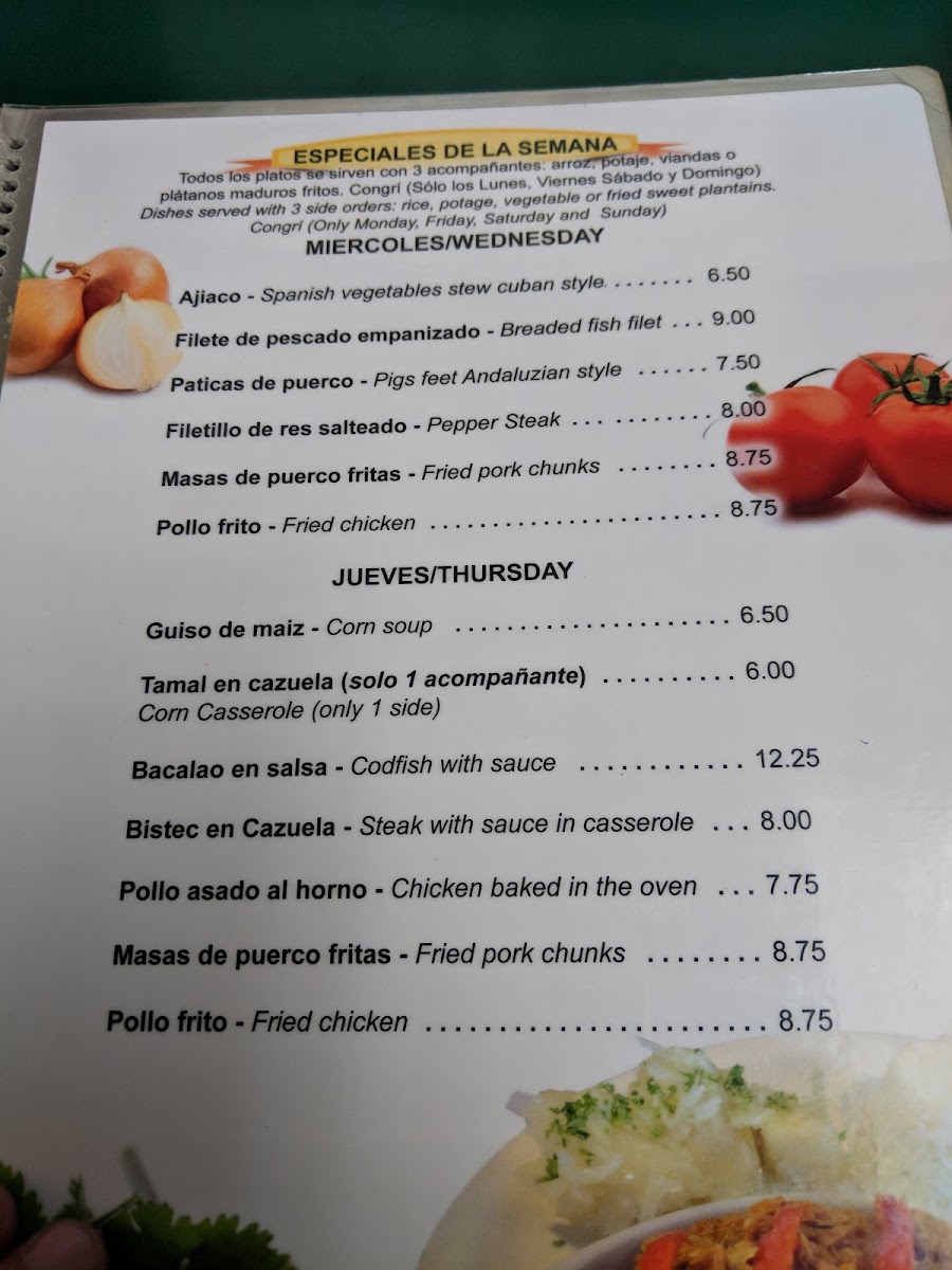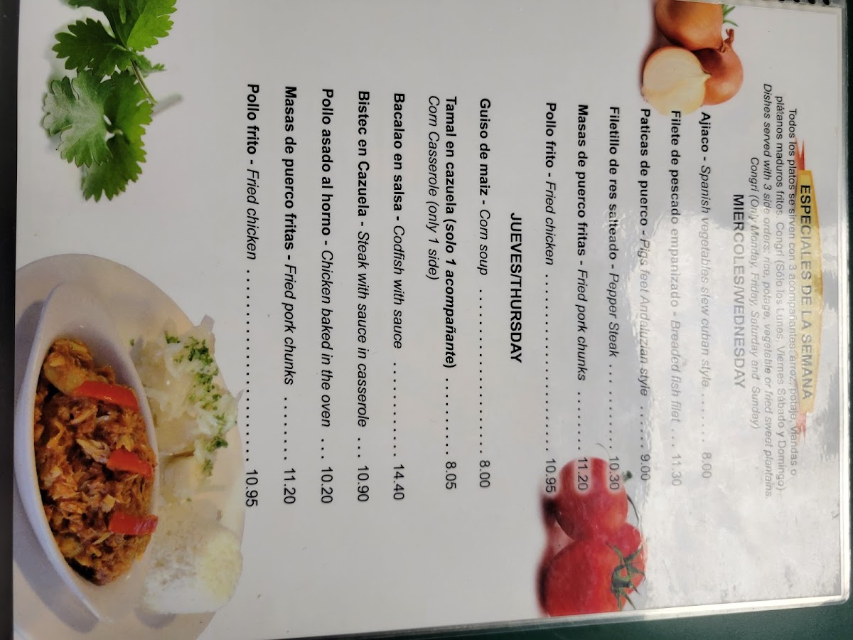 Yoyito Cafe Restaurant Menu